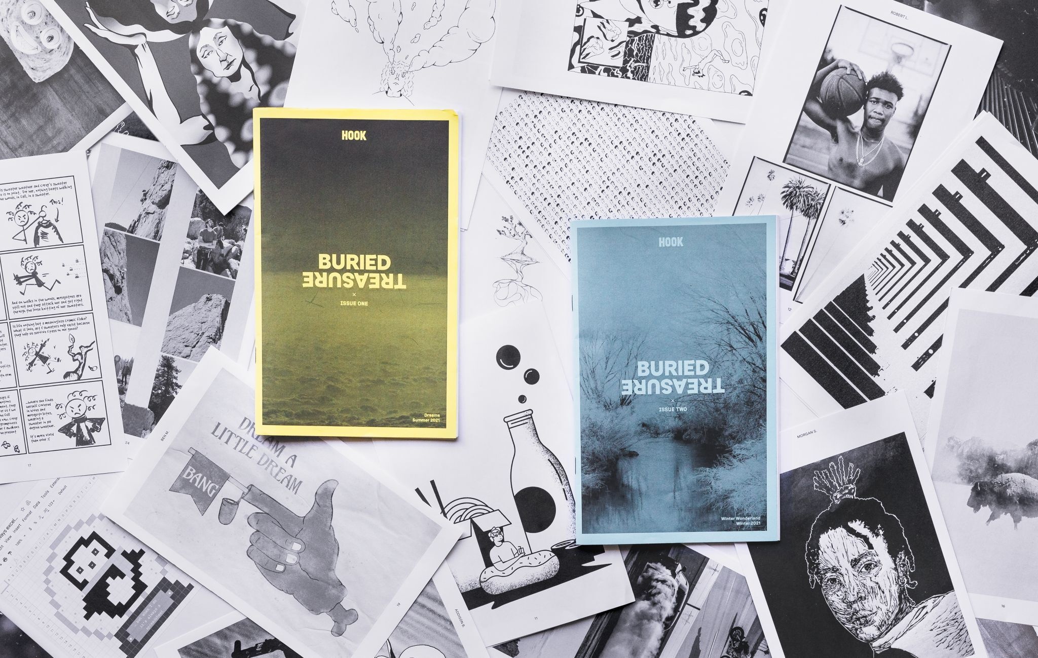 Filled with art ranging from poems and sketches to photos of googly-eyed sandwiches, Buried Treasure is Hook’s bi-annual internal zine that’s all about creating simply to create.