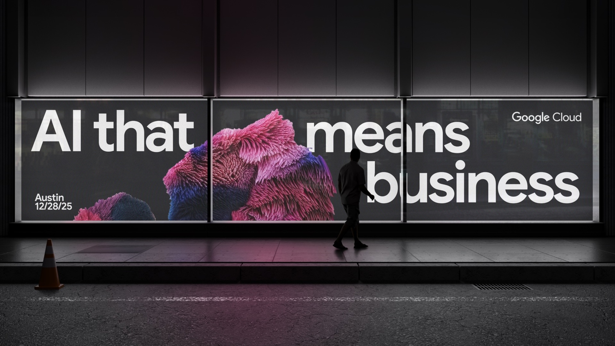 To illustrate what Cloud AI is solving for, we created a look and feel that uses Gen AI imagery and dynamic text animations to show solutions to real business challenges.