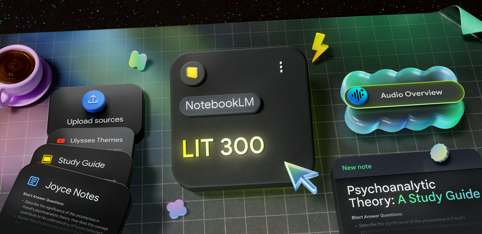 For many students, hitting classwork deadlines can be a major challenge. To help, Google released NotebookLM, an AI-powered learning companion that generates summaries, study guides, and audio overviews from sources you upload. For the launch campaign, we started with a scrappy video shoot capturing real college students in situ, then brought this footage to life with informative 2D animations, 3D elements, and vibrant colors.